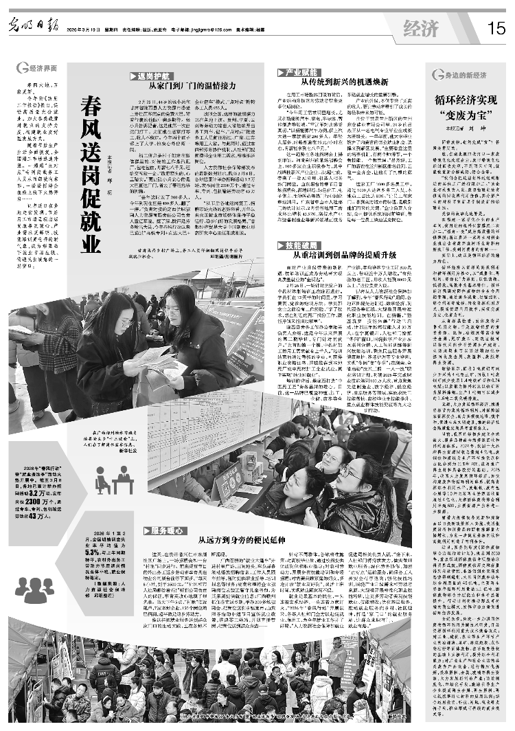就业是人民群众最基本的民生手段。一端与宏观经济相连,另一端与万家灯火相连。 “2026年春风行动启动以来,各级人力资源社会保障部门全力促进就业、保障劳动者,全年就业活动开局良好。”人力资源和社会保障部就业促进办公室有关负责人表示。 “下一步,人力资源社会保障部门将继续努力,扎实做好各项工作。产业服务:深化劳务合作,强化“点对点”运输服务,保障农民工安全有序返乡;加强职业培训和汽车根据产业现代化需要和劳动者意愿,开展精准化、规模化的职业培训,让更多劳动者实现合格就业、增加收入。优化基层服务,推动就业服务向乡镇社区拓展,创建“门户”就业服务站,帮群众找工作、想办法找工作;